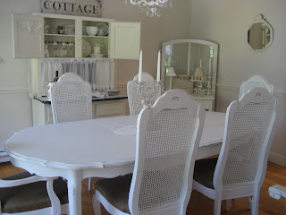 I added these French styled numbers (1-6) to the backs of the chairs. My original thought was to stencil them on but when my search for the perfect font failed....I settled (for now anyway) on these, which are rub-ons I bought at a craft store.