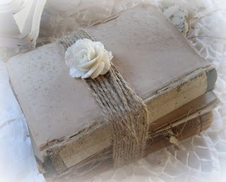 I bought the stack of antique books, complete with vintage doily, photo tag and a handmade fabric flower clip from Destash Pearl.